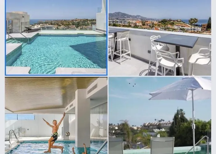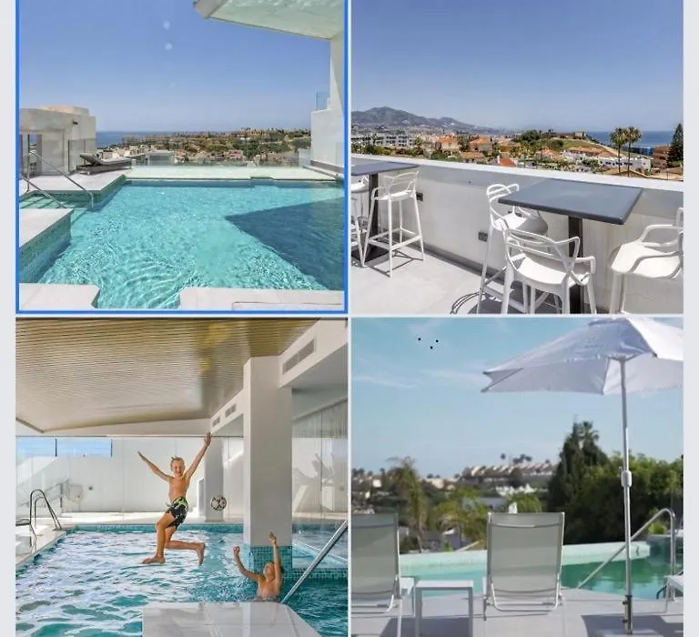 자쿠지, 개인 수영장, 사우나를 갖춘 The View Luxury Vacation Penthouse 1 아파트는 말라가 공항에서 30km 떨어져 있습니다. 푸엔히롤라의 바이오파크 푸엔히롤라에서 도보로 20분 거리에 있는 숙소는 3개의 침실과 부엌을 갖추고 있습니다.